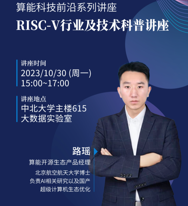 20231030日,算能科技有限公司“RISC-V行业及技术讲座”在我校主楼615大数据实验室成功举办。算能开源生态产品经理路遥博士为全校100余名关注RISC-V的学生带来了生动的报告,并在讲座后进行了基于RISC-V开发板的边缘设备人工智能算法部署现场实操。