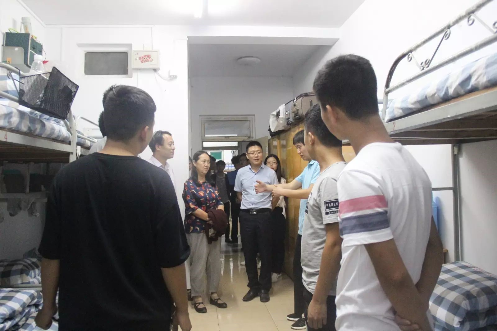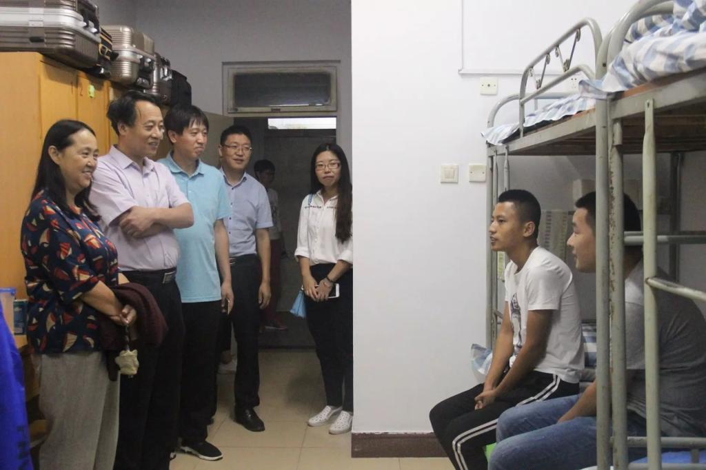 院党委书记郭书杰,院长韩燮,副书记杨晓东,副院长秦品乐,学生科团委全体老师及新生班主任深入2017级新生宿舍进行视察,并对新生表示慰问和关怀。