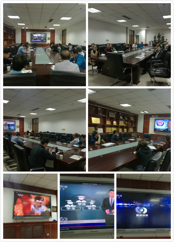领导、各科室负责人、学科管理部主任、副主任、党支部书记及辅导员近20人通过网络在主楼919会议室观看了9月15日和16日《焦点访谈》的相关视频。