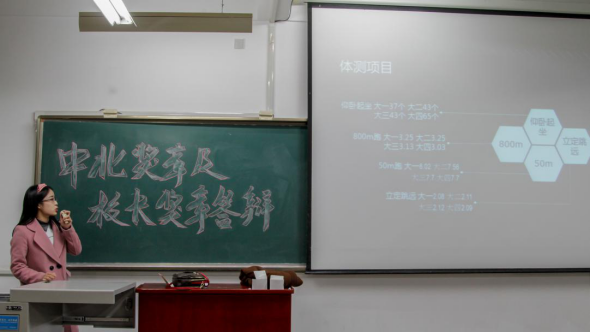 其中王雪婷同学在答辩时提:自己坚持早起,觉得这是自己偷来的时光。坚持锻炼,累计运动天数385天,身体素质越来越强。她对时间视如珍宝,她对运动付诸热爱。有志者事竟成,如今优秀的她便是对逝去日子努力的最好体现。接着,中北奖章竞选班级代表分别就自己班的制度,成绩,班级活动,班里成员获奖经历等展开答辩。流利自信的言语,精彩纷呈的解说,各不相同的班级特色,积极优良的精神风貌,充分展现出催眠av