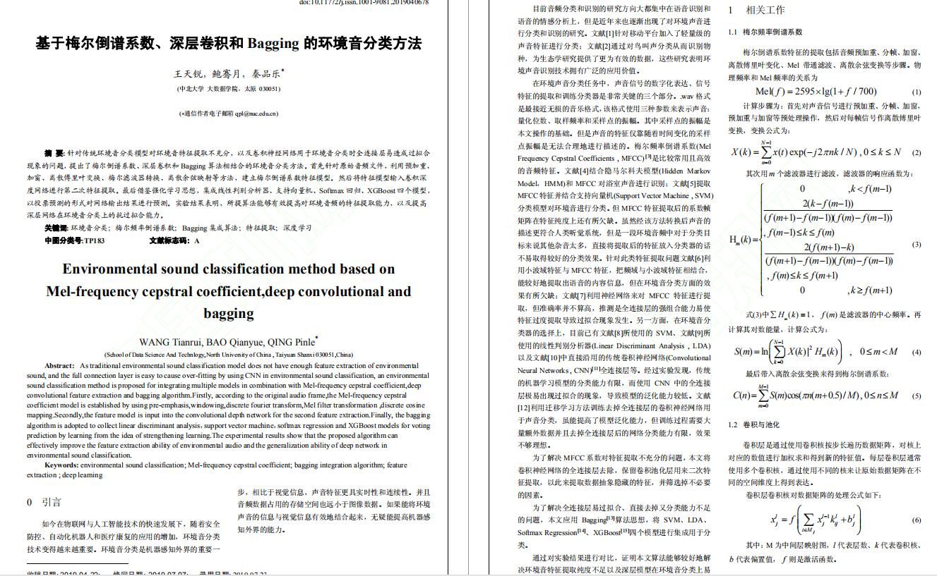 2019年8月,Android创新实验室16级学生负责人王天锐(物联网工程专业)和鲍骞月(数字媒体技术专业)同学在实验室秦品乐老师的指导下,在中文核心期刊《计算机应用》(中国计算机学会评选为优秀期刊)发表一篇学术论文《基于梅尔倒谱系数、深层卷积和Bagging的环境音分类方法》,已被中国知网(CNKI)检索。该文针对传统环境音分类模型对环境音特征提取不充分,以及卷积神经网络用于环境音分类时全连接层易造成过拟合现象的问题,提出了梅尔倒谱系数、深层卷积和Bagging算法相结合的环境音分类方法。实验结果表明,所提算法能够有效提高对环境音频的特征提取能力,以及提高深层网络在环境音分类上的抗过拟合能力。本论文是催眠av