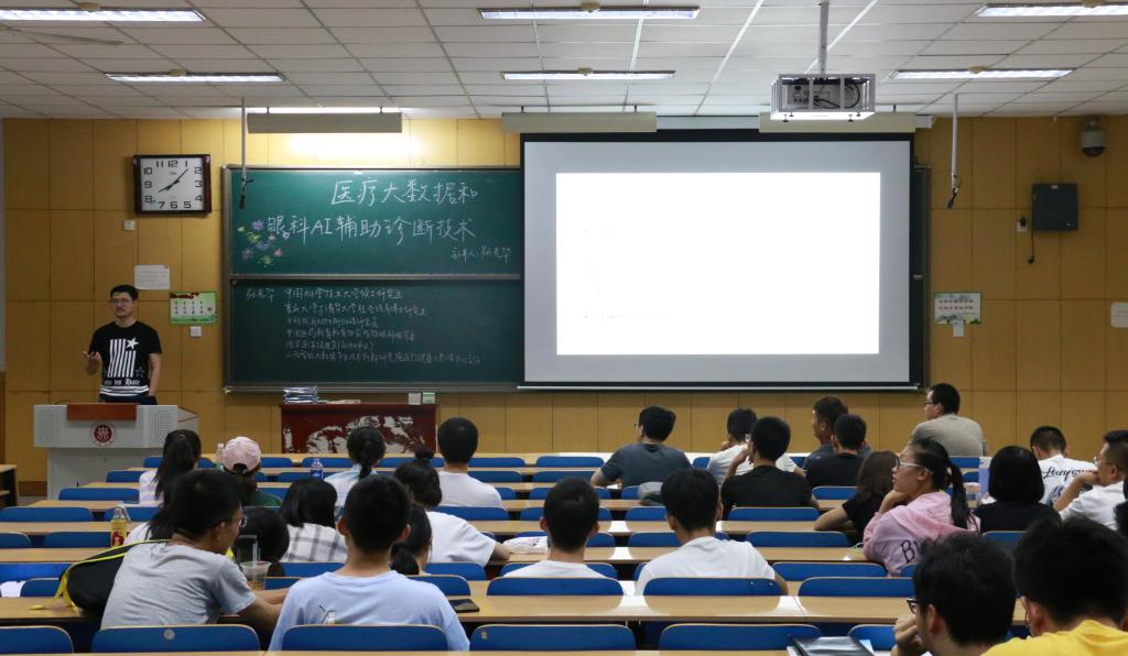 有幸请到了张光华老师召开关于医疗大数据和眼科AI辅助诊断技术的主题讲座。此次讲座于2019年9月9日星期一,在11号楼308号教室开讲。井超老师参加了此次讲座。