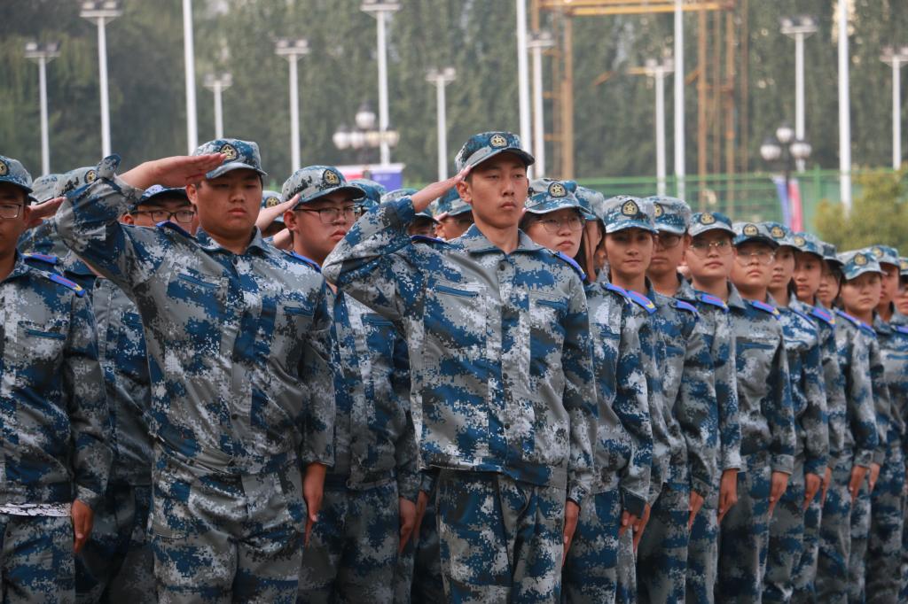 的行知广场上响起,那是七营全体参训人员及教官合唱的中北校歌《再铸辉煌》紧接着的是文工团的表演,倾情演唱的《我和我的祖国》用歌声为我们绘出一幅祖国的盛世画卷,展现对党对祖国对人民无限赤爱。而后的朗诵和歌曲《精忠报国》的演唱更是将在场每一个人的爱国热情推向高潮。