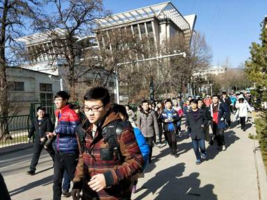 中午1220分整,火警鸣笛声响起,全体教职工与学生迅速进入紧急疏散状态。在负责人的带领下,他们用湿毛巾或衣物捂住口鼻,弯下身子,有序从主楼安全通道撤离到行知广场。