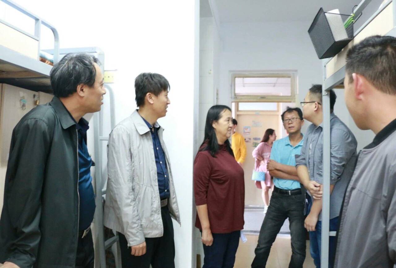 院党委书记郭书杰,院长韩燮,院党委副书记杨晓东,教师代表梁志剑、新生班主任以及全体辅导员前往18级本科、研究生宿舍,对新生表示慰问。在慰问中,每到一个宿舍,老师们都与新生进行亲切交流,了解他们的住宿环境以及宿舍各种设施是否完好,确保新生有良好的住宿环境。期间,郭书记、韩院长、杨书记都对同学们表示热烈欢迎,并希望大家珍惜大学生活,积极参加各种学科竞赛,学会自我约束,自我管理,通过自己的努力,学有所成。老师们的关怀和鼓励赢得大家的阵阵掌声,同学们纷纷表示将铭记老师的谆谆教诲,不负韶华,奋发图强,早日实现自己的人生梦想!