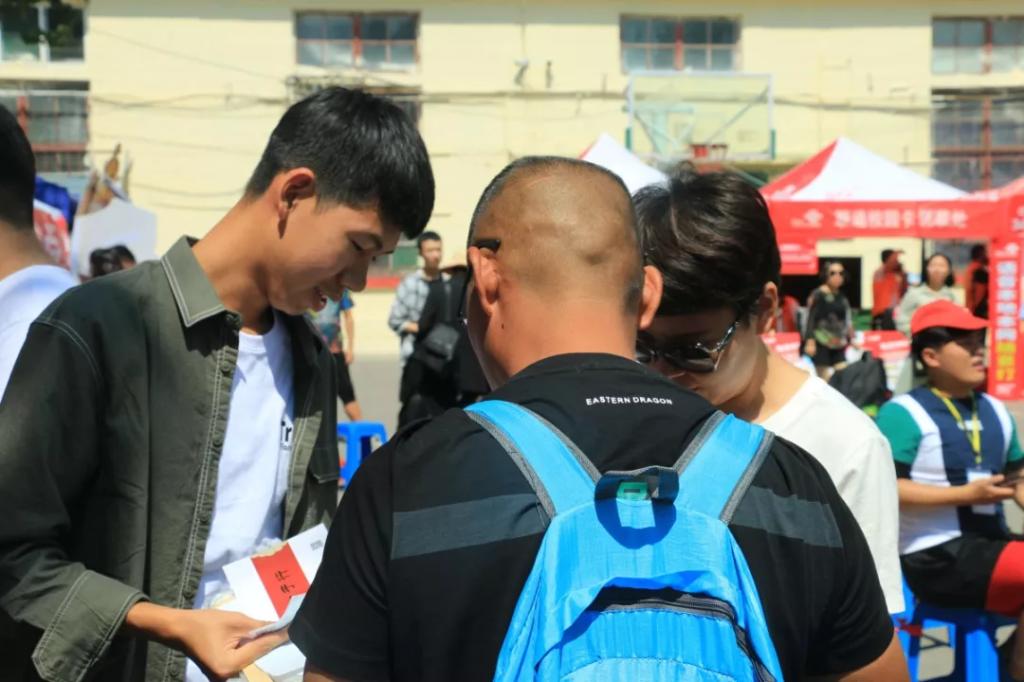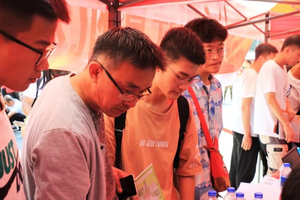 校长沈兴全、校党委书记李忠人一行也到达了大本营,亲切慰问现场的迎新工作,看着不断到来的新同学和认真工作的志愿者,他们的脸上露出了满意的笑容。