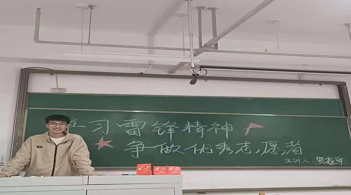 其次,主讲人贺鑫宇同学上台发言,“当前,要大力弘扬雷锋热爱党、热爱祖国、热爱社会主义的崇高理想和坚定信念,弘扬雷锋服务人民、助人为乐的奉献精神,弘扬雷锋干一行爱一行、专一行精一行的敬业精神,弘扬雷锋锐意进取、自强不息的创新精神,弘扬雷锋艰苦奋斗、勤俭节约的 创业精神 。”表达当代大学生应继承发扬雷锋同志舍己为人、无私奉献的精神,积极参与志愿活动,争做优秀志愿者。最后,大家一同合影留念,用以纪念这场活动。