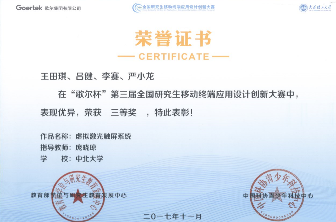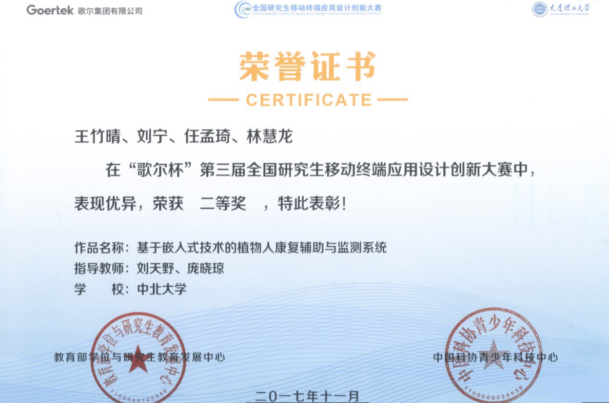 2017年全国研究生移动终端应用设计创新大赛经过历时半年的网上预赛与北京现场决赛,由催眠av 庞晓琼老师指导的催眠av 两队参赛学生喜获佳绩,分别获得全国二等奖和三等奖。特此祝贺!