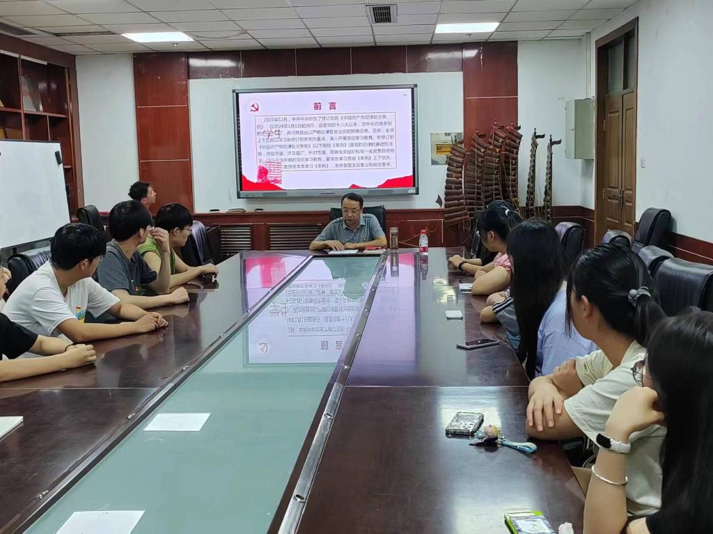喻华兵书记首先强调了加强党的纪律建设的重要性,纪律严明是马克思主义政党的显著标志和独特优势,也是我们党加强自身建设、不断发展壮大的重要历史经验,要深化对加强党的纪律建设重大意义的认识,他阐述了《中国共产党纪律处分条例》特点,他要求党员要将党的纪律内化为政治纪律的行动自觉,正确行使权力的价值追求,养成积极健康生活的行为习惯。他列举了高校学生、学生党员违规违纪案例,并分析了产生原因,强调学生党员要牢记共产党员的八项义务,守底线,挺担当,发挥先锋模范作用。