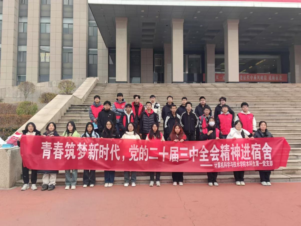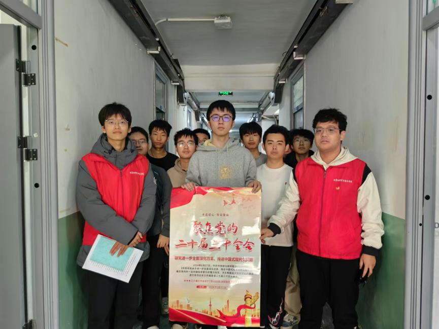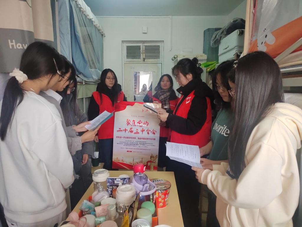 本科生第一党支部全体党员,入党积极分子以及研习会宣讲团成员深入学生宿舍进行党的二十届三中全会精神宣讲。