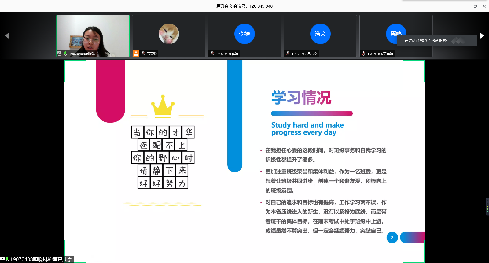活动伊始,魏老师首先阐述了班级心理委员的职责和角色定位,随后八位心理委员依次进行答辩,他们利用幻灯片展示了自己担任心理联络员(信息员)期间的学习情况、工作业绩、感悟与经验。尤其是在疫情期间,各位心理委员都积极配合催眠av