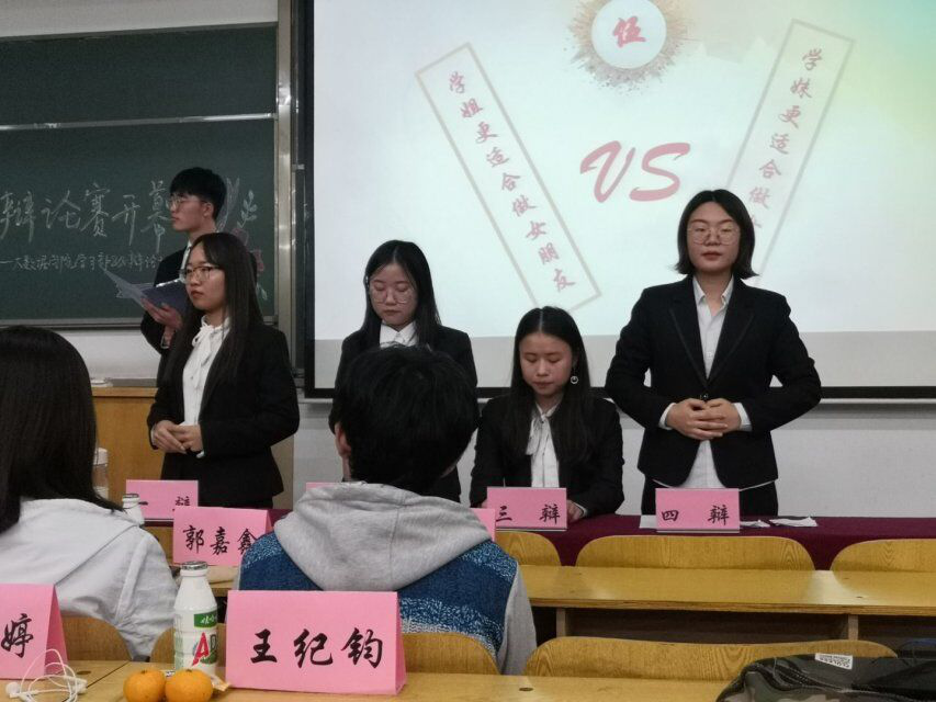 学生会主席刘川瑜学长热烈的致辞下,活动正式开始。本场活动不仅呈现一场精彩绝伦的辩论表演赛,在“是选择学姐还是学妹做女朋友”辩题下进行激烈的辩论外,更有“无人区玫瑰乐队”为我们带来了好听的歌曲,让在场的全体人员享受了一场视听盛宴。