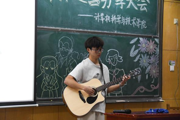 大会期间也有许多精彩的小节目来活跃气氛,如刘善宇学长为大家演唱的《想见你想见你想见你》以及吉他社同学为大家带来的歌曲《晴天》。当然还有一些小游戏,如数金币游戏,听歌识曲环节,看图答题环节等。大家都积极参与当中,许多人也都得到了小奖品。