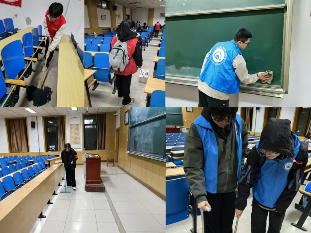 24070542班的青年志愿者们齐聚校园开展教室卫生清扫活动,为营造良好学习环境助力。