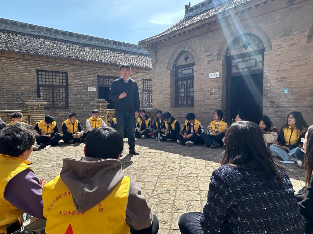 第二站,全体师生来到八路军总部王家峪旧址。转过蜿蜒山道,古朴的砖瓦院落映入眼帘。在八路军总部王家峪旧址,斑驳的桌椅、发黄的电报手稿无声诉说着往昔峥嵘。“在如此艰苦的条件下,先辈们却在这里指挥了百团大战!”同学们不禁发出感叹。凝视着墙上“坚持持久战”的题词,仿佛看见先辈们伏案疾书的身影,感受到从窑洞灯火中迸发的智慧光芒。